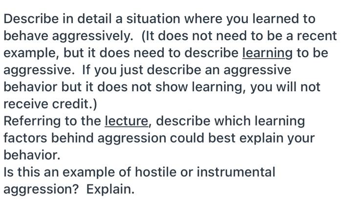 Of The Following, Which Is The Best Example Of Instrumental Aggression?