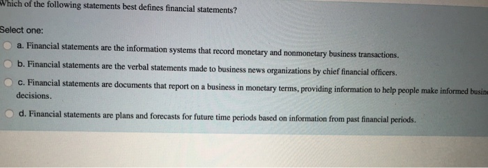 Which Of The Following Statements Best Defines Financial Statements?