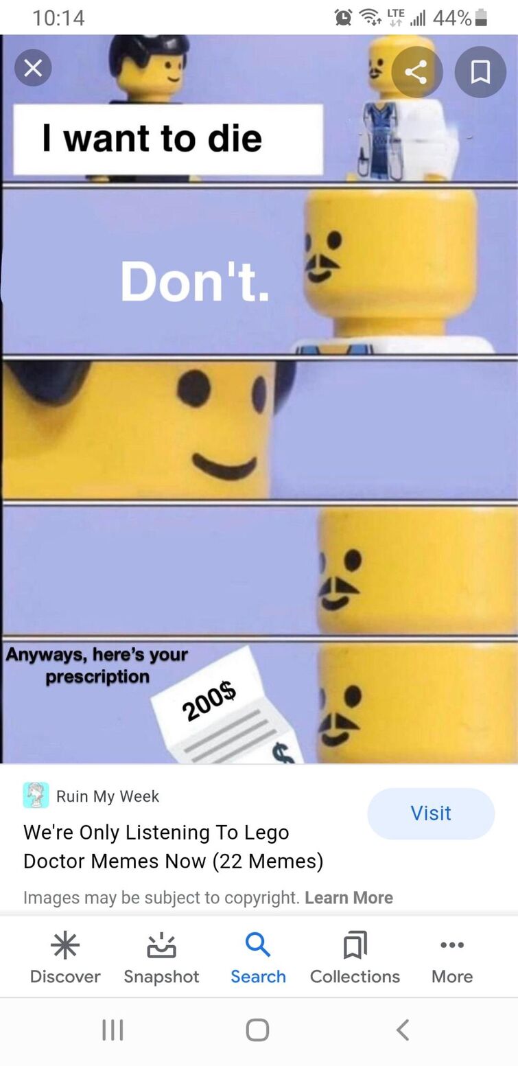 Doctor lego meme. The common feature in these memes is an uncaring or clueless doctor offering his patent useless dangerous or otherwise unhelpful advice for a hefty fee. He believed that he is very good in medical issues especially in pestilence. Featured Lego Doctor Memes See All.