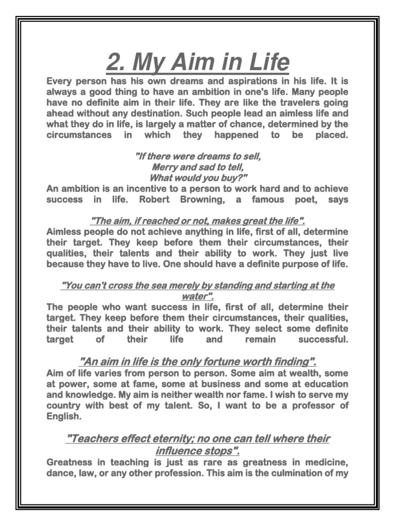 Hence it is essential for everyone to have an aim for life. I like discounts and holidays Essay On The Aim Of My Life Is To Become Ca sales it always helps to save a great deal of money. Different individuals have different aims in life.