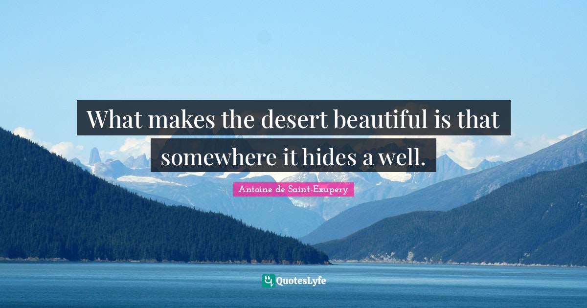 What makes the desert beautiful. The novels setting is in the Sahara Desert. Also the name of the old NickGreg site so thanks to carolinecrane for the inspiration. What makes the desert beautiful is that somewhere it hides a well Antoine de Saint-Exupery If Christ is present in our.